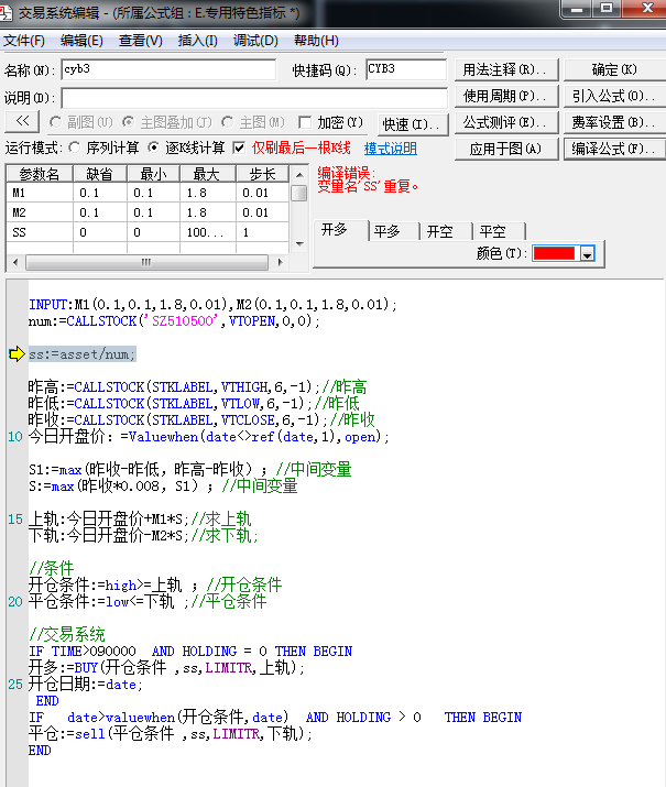 INPUT:M1(0.1,0.1,1.8,0.01),M2(0.1,0.1,1.8,0.01),ss(CALLSTOCK,0,100000000,1);//参数值
