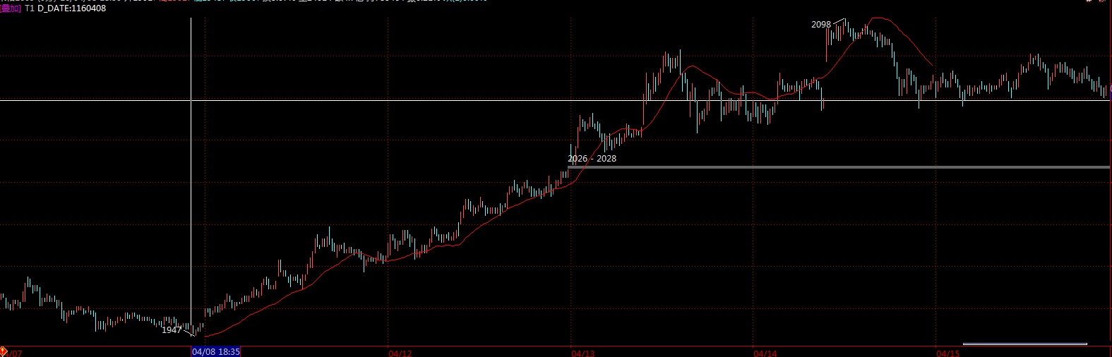 你的日期是4.10到4.15号这个时间段的,你把k线拉到这个时段