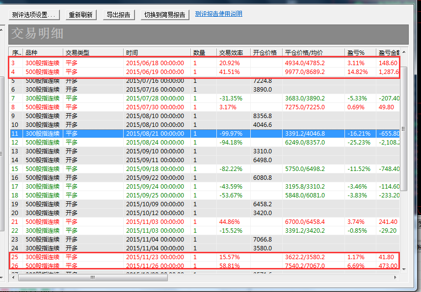 2.连续盈利指的就是连续平仓n次,这n次都是获利的。出现次数就是出现了几次这样的情况。下图中就是2次连续获利的。框出来的就是连续获利