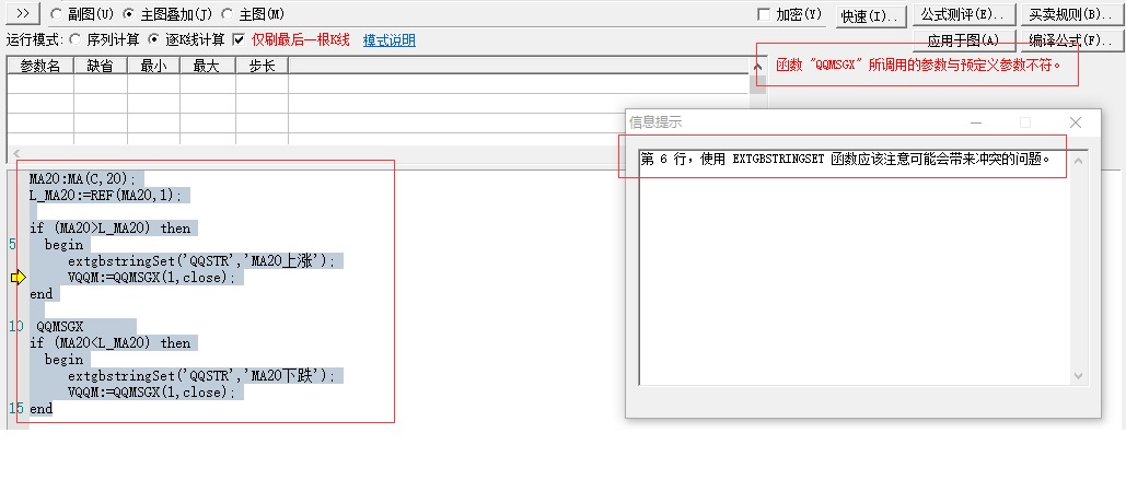 在编译测试代码时,提示 ““QQMSGX”所调用的参数与预定义参数不符“。