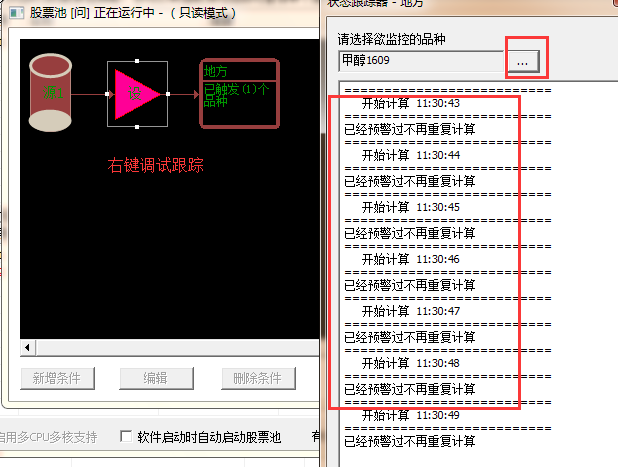 重复触发源已触发的品种这个选项你没有勾选,会导致其他条件已经触发后,你这个条件不会再触发