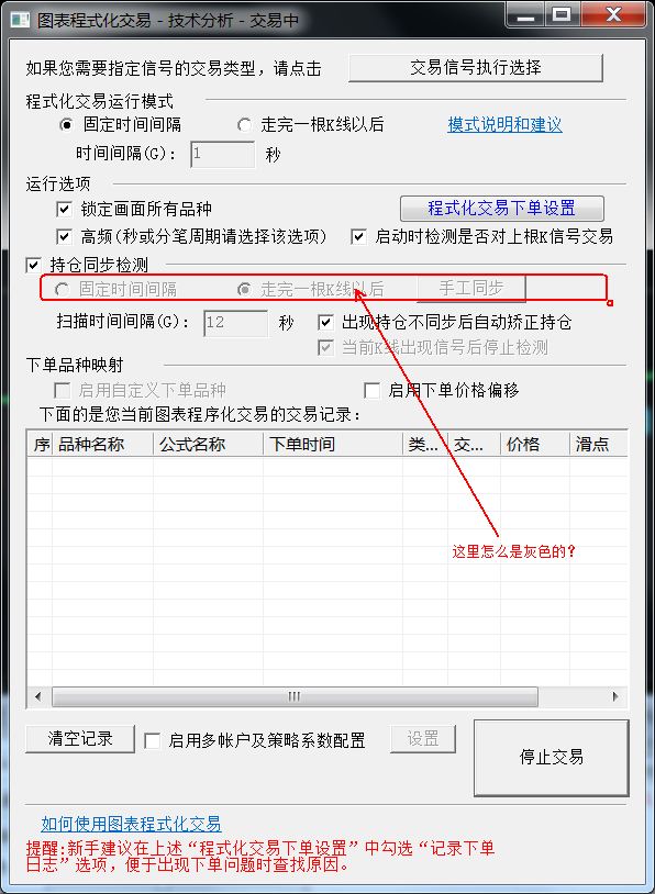 程序化交易工作时是不允许调整这些选项的,停止程序化后就可以了