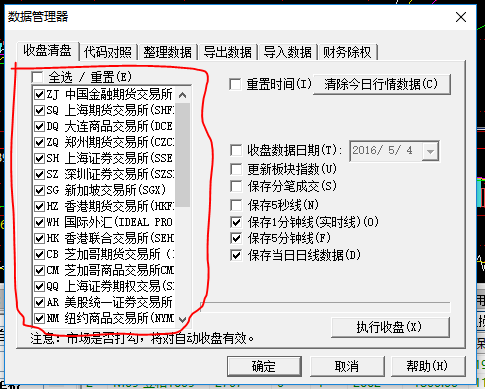 下图红圈中打勾了的,就是收盘时需要保存数据的市场/板块吗?