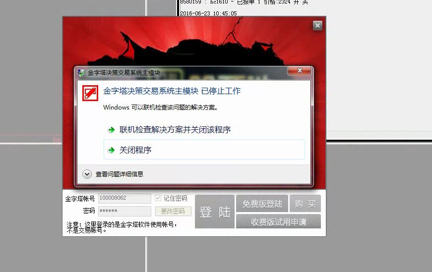 就出现"金字塔决策交易系统主模块 已停止工作“