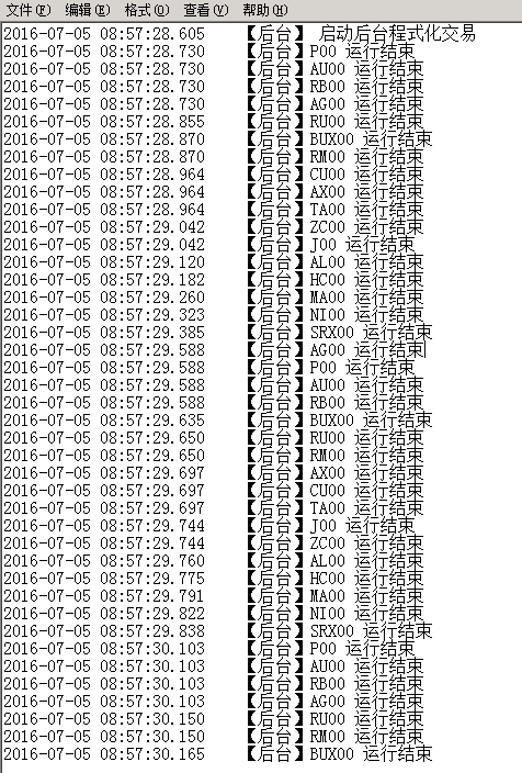 今天塑料和聚氯乙烯在集合竞价还是没有挂单,代码中增加了一行调试代码也没任何反应: msgout(STKLABEL='V00' or STKLABEL='L00','日盘gd');,看来还是跟昨天一样,该合约根本就没有一次轮询到:
