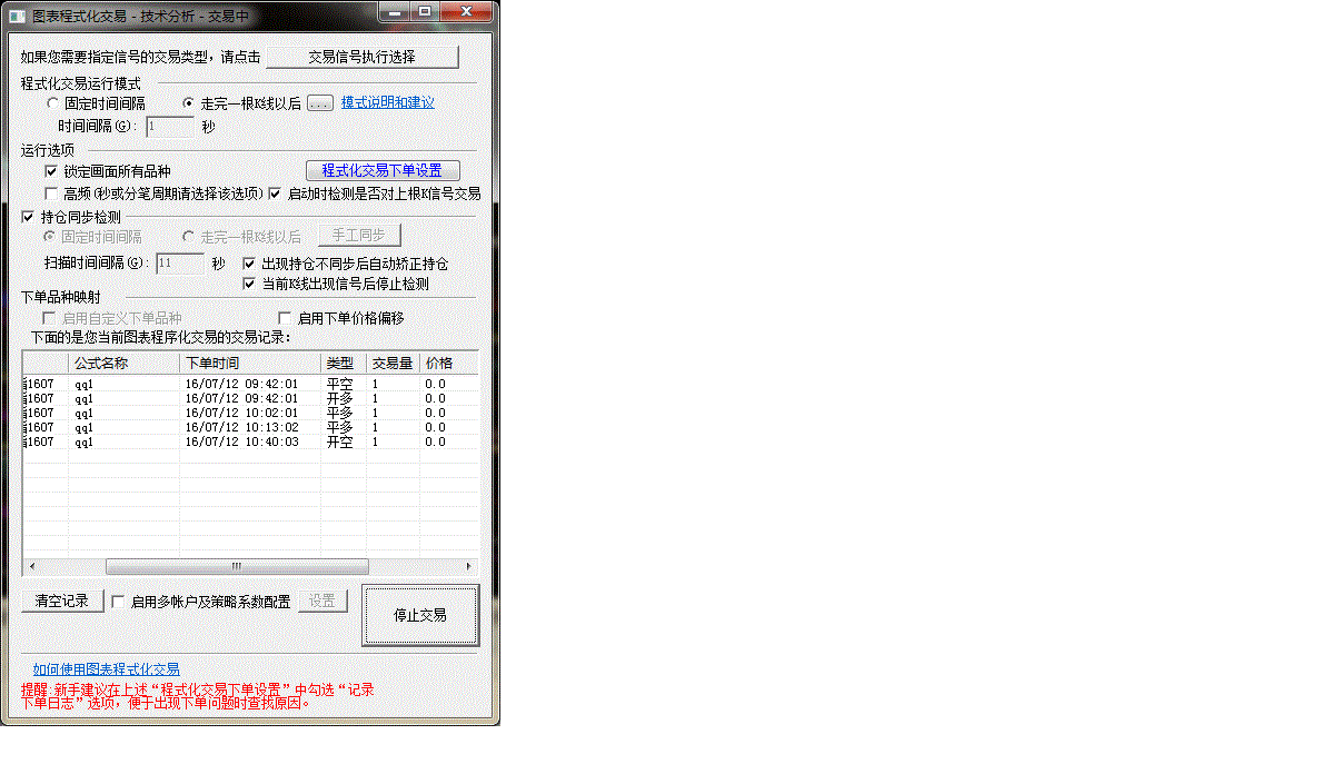3.9版本了,图表交易走完k线下单,勾选持仓同步情况下,是不是还不能勾选“当前k线出现信号后停止检测”?原来的解释是图表交易单框架多个图表情况下某一个品种出现信号后会影响其它品种的持仓同步。可是我发现单框架单图表,同时勾选“持仓同步”和“当前k线出现信号后停止检测”情况下,还是不能正常下单。具体情况时,有信号的k线结束后,下1根k线开始没有下单,而是等到再过1根k线后执行持仓同步。这问题坛友反映好久了,目前到底解决了没有?