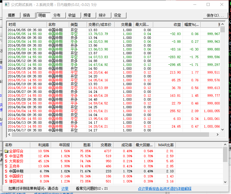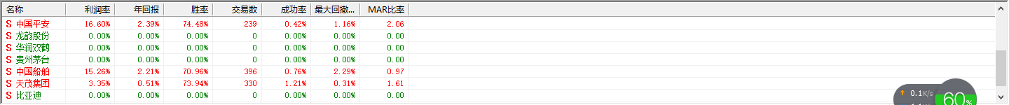 没有收益率的股票或者交易信号不完全覆盖2010年到现在的股票,我分别打开K线图日线,缩放让他自动补充数据到2010年,然后就有交易信号了。但是还是有两个问题: