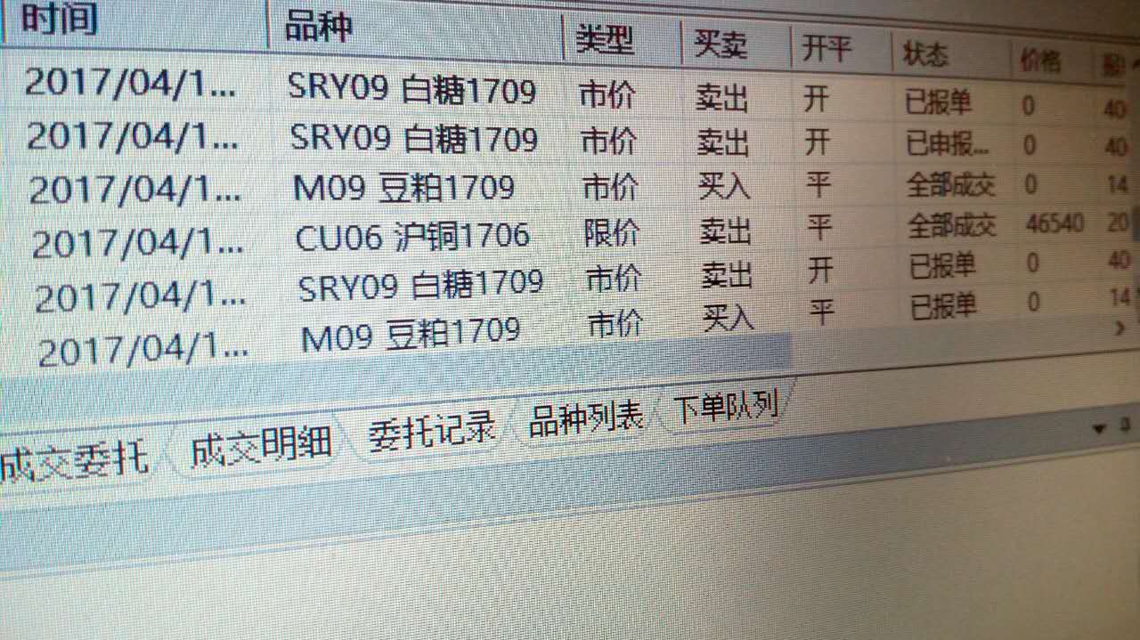 白糖自动化不能下单,有委托记录,不能成交,委托价格显示是0,其他品种能成交。