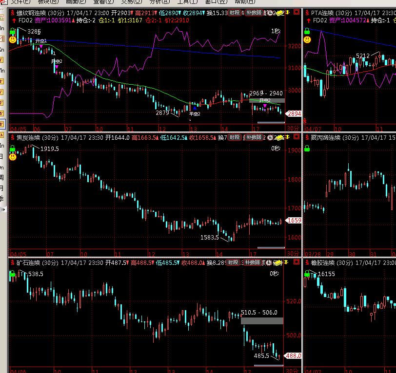 我测试了下,关闭程序化,全部程序化图标消失,再启动程序化,依然如上图,包括焦炭在内出现了程序化图标,其他几个没加载策略的依然没图标,焦炭很特别,没加载策略居然程序化图标能出现;