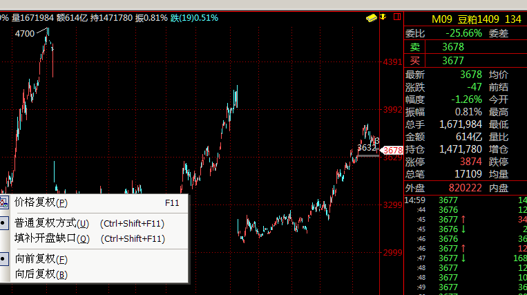 如下图,豆粕1409的数据,没有除权?