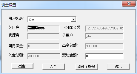 1,可分配资金那项是灰色的不用填写,在用户列表里选择子帐户,变动资金里写分配金额,点击入金即可。