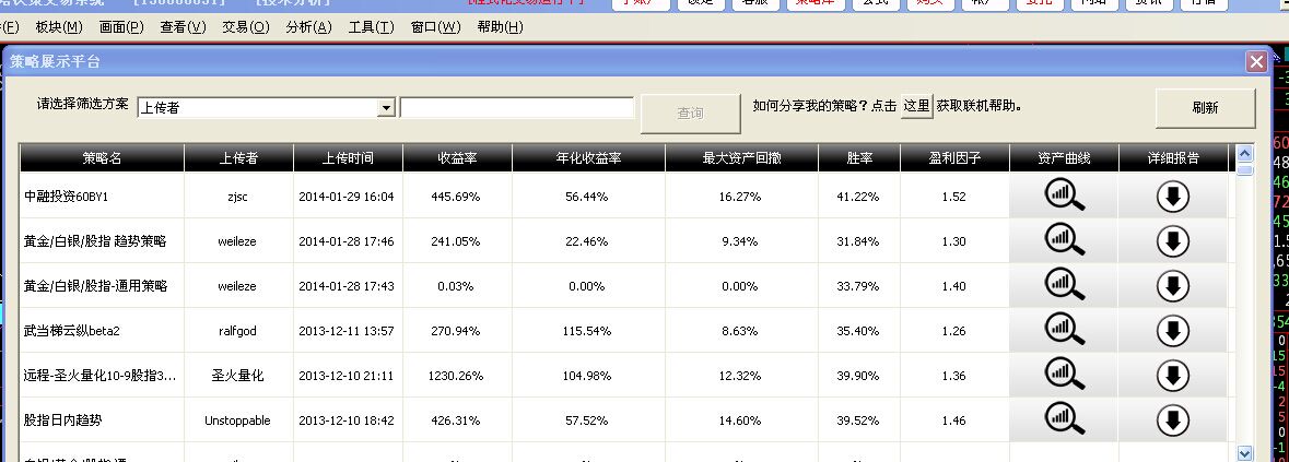 这里面的策略都是金字塔用户上传的,我们只是提供了一个展示平台。