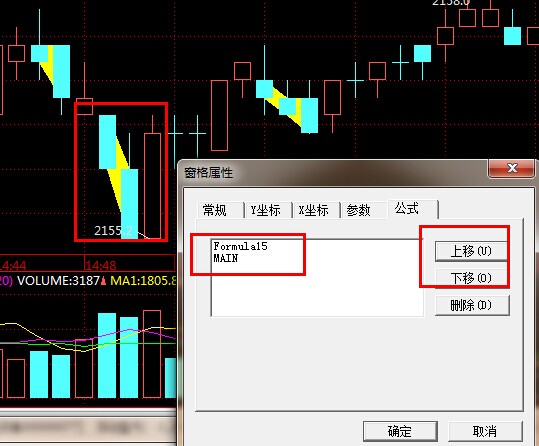k线图点击右键-》窗格属性-》公式 把公式移到主图之上