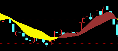 VAR1:=MA(C,5);VAR6:=MA(C,13);DRAWBAND(VAR1,RGB(155,50,50),VAR6,RGB(250,250,0));