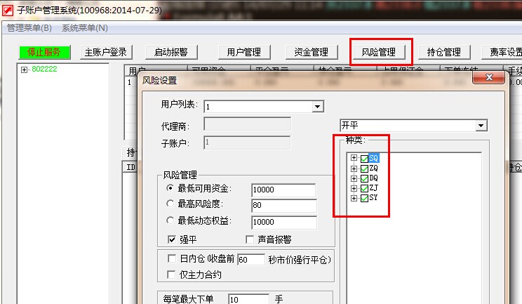 子账户管理系统-》风险管理 里的市场没有勾选,要打上勾
