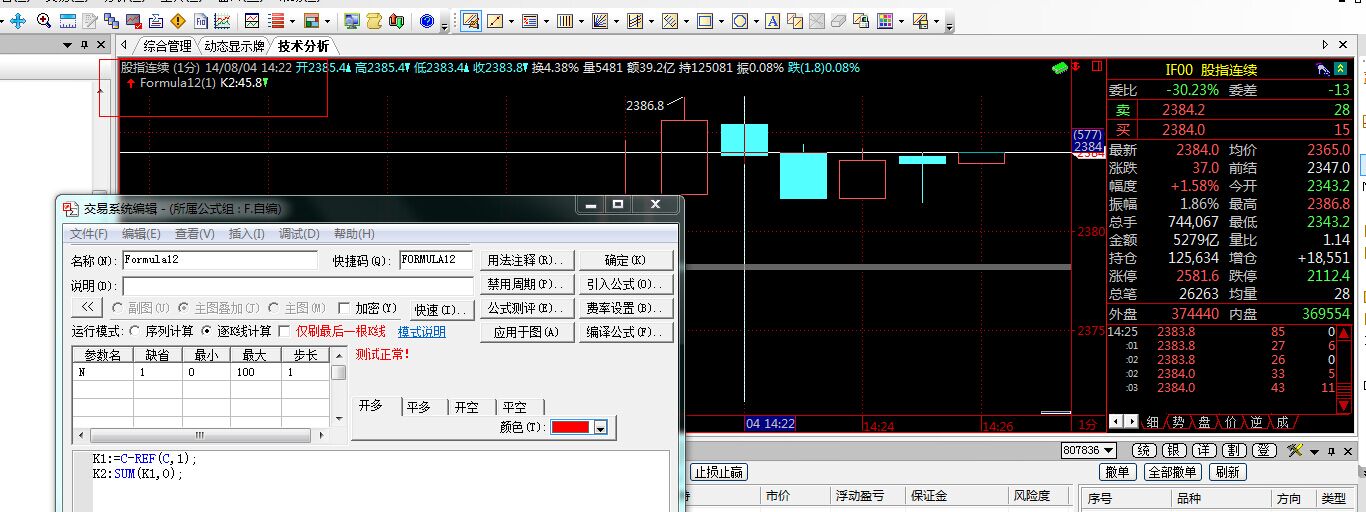 K1:=C-REF(C,1); K2:SUM(K2,0); 英雄,你切换到分钟线,这样快点。 记下前一根K线的数值。等目前的K收盘的时候在看一下。数值已经变了。 如果没变,那就多等2跟K收盘。100%变动。我试过2台机器了。 |