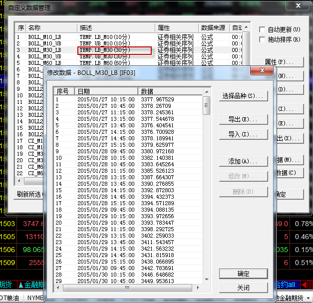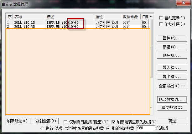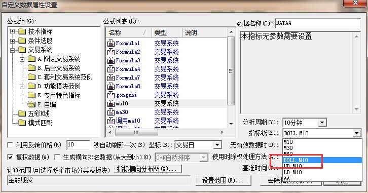 请问,为什么在10分钟周期上的自定义数据没有数据,而在 30,60分钟周期上的都有数据