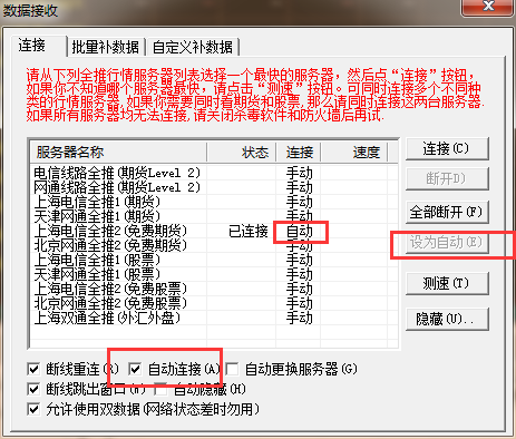 数据接收里选择服务器设置自动,勾选自动连接如图2