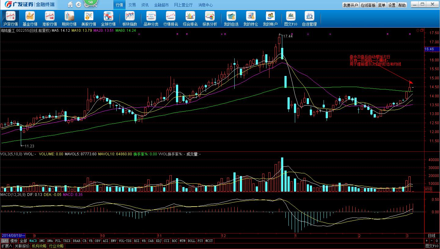 请金提供,关于K线图增加次日在收盘价位置一小横线图示,便于分析和盘中预判次日的形态走势和均线。。