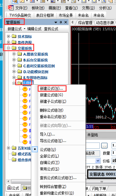 查看-》管理面板 交易系统-》自编里点右键 新建公式,把你自己编写的代码复制进来