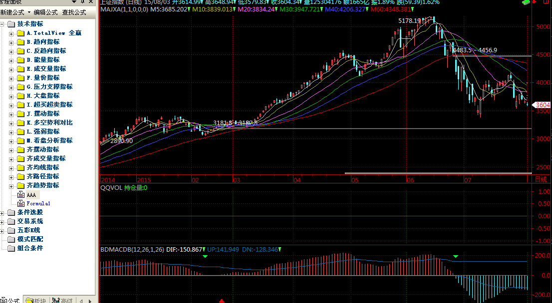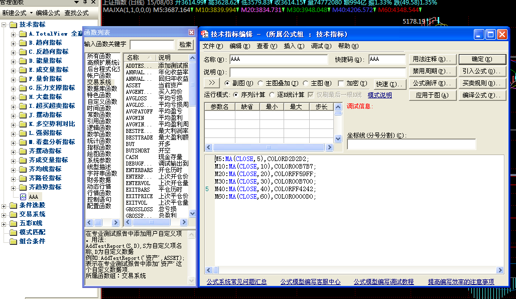 真服了,我重新在技术指标里新建一个公式AAA,然后,复制我上边的代码,然后选择主图,然后编译,然后确定,然后,无论如何点击AAA,双击AAA,键盘输入AAA,都没有任何效果,主图还是以前的图。并且我家里的电脑如此,我公司的电脑也是如此。这如何解释……