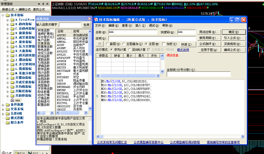 真服了,我重新在技术指标里新建一个公式AAA,然后,复制我上边的代码,然后选择主图,然后编译,然后确定,然后,无论如何点击AAA,双击AAA,键盘输入AAA,都没有任何效果,主图还是以前的图。