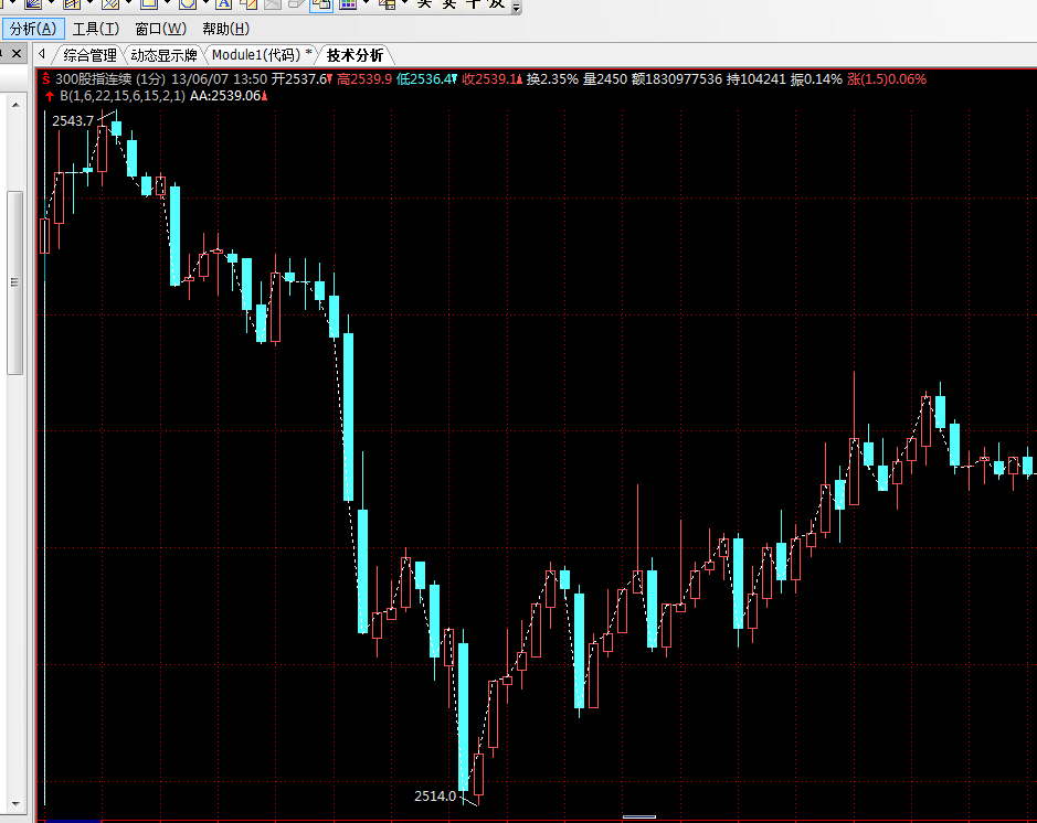你可以把实线 和 虚线 同时加载到两个副图上比较,两个线的变化是一致的。