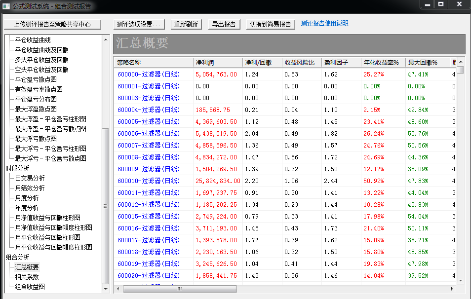 已找到专业测试报告,问题基本解决,不过在策略名称当中,只有股票代码,没有名字,希望能完善一下。
