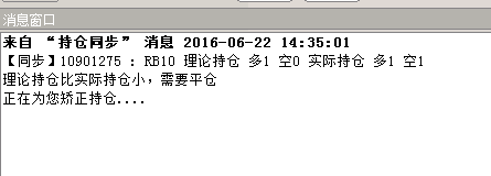 2016-06-22 14:35:01.775 【同步】8888888 : RB10 理论持仓 多1 空0 实际持仓 多1 空1